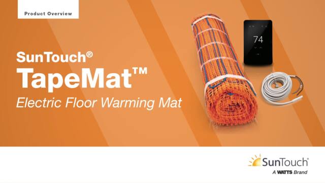 SunTouch® TapeMat® electric floor heating mats are a series resistance heating cable assembly designed for installation over plywood, backer board, or concrete slab (according to ANSI or TCNA guidelines), and then embedded in 3/8 in. (9.5 mm) or greater self-leveling or polymer-modified thin-set mortar. The SunTouch TapeMat open-weave design with peel-and-stick tape provides fast and easy installation on subfloors.